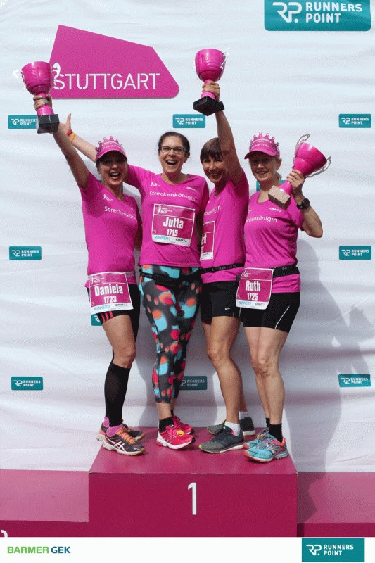 Pinkfarbene Teilnehmer-Shirts mit dem diesjährigen Motto „Streckenkönigin“, Shoppen und Wellness im Women’s Village am Fernsehturm, und eine nicht zu lange Laufstrecke von 8 km, das hat uns 4 TFF-Mädels, Jutta, Berit, Ruth und Daniela, magisch angezogen, und so haben wir uns zum Ort des Geschehens, direkt am Fernsehturm, aufgemacht, um dort mitzulaufen.