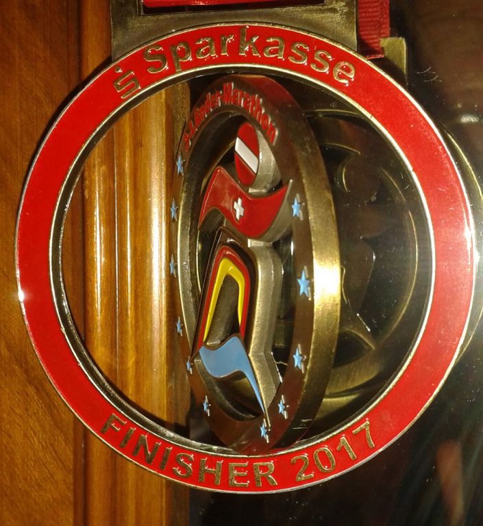 Belohnt wurden alle Läufer mit einer wunderschönen Medaille, welche die Flaggen der 3 durchlaufenen Länder und den Bodensee zeigt.